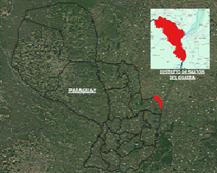 Figura 1. Mapa de Saltos del Guairá, Paraguay.