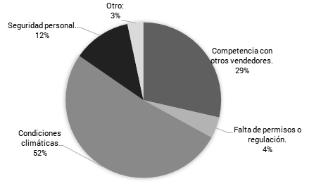 En este resultado, el mayor desafío de los vendedores son las “inclemencias climáticas”, la lluvia, el calor excesivo, el frío porque ellos trabajan en las calles sin protección cómo locales adecuados.