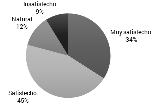 En la Figura 6, se presenta que el 45% se siente satisfecho con su trabajo como vendedor ambulante, lo que indica una percepción positiva general, de igual modo el 34% se considera muy satisfecho, lo que refleja un nivel alto de satisfacción en este grupo, un 12% se encuentra en un estado natural sin embrago, el 9% se siente insatisfecho lo que indica que hay áreas de mejora en la satisfacción laboral.