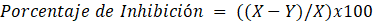 Para obtener la concentración de cipermetrina que inhibe el 50% del crecimiento fúngico se promediaron los porcentajes de inhibición obtenidos del Día 1, 4 y 7 y se calculó utilizando una ecuación lineal obtenida por la recta de la gráfica de regresión lineal (concentración vs. porcentaje de inhibición).